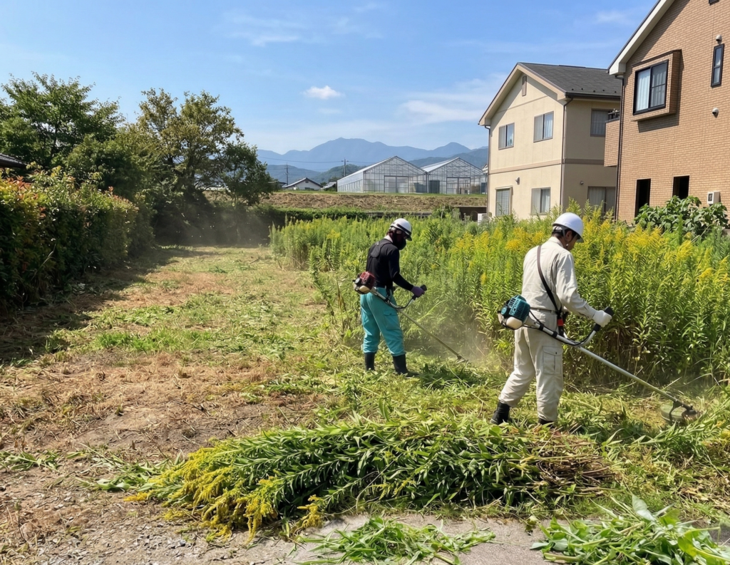 | 作業内容 | 空地の草刈り(100㎡) |